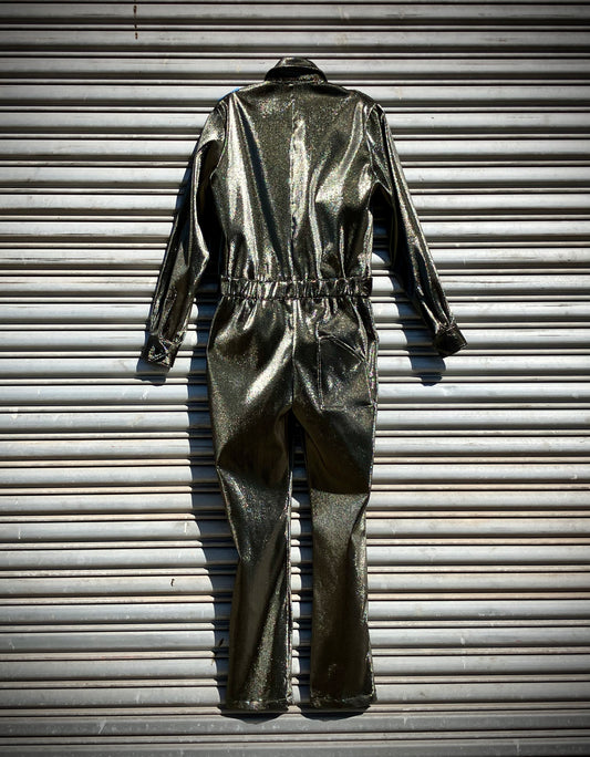 THE QUIMBY Shorts Jumpsuit - Short Sleeve in Sparkle Denim