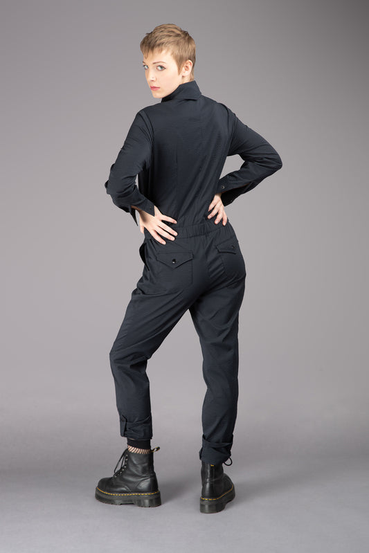 THE WILDE Jumpsuit - Long Sleeve in Black Japanese Seersucker